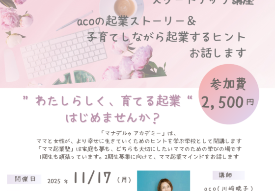 11/17 マナデルゥアカデミー💗ママ起業塾 スタートアップ講座~子育てしながら起業したいママへ~