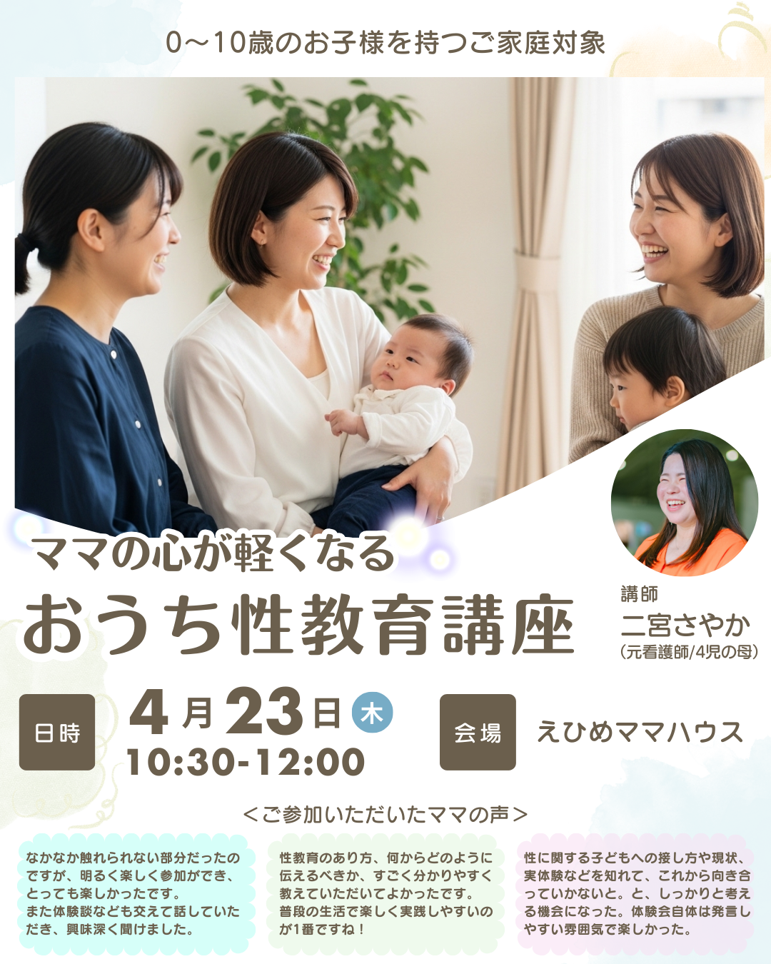 4/23 「ママの心が軽くなる おうち性教育講座」
