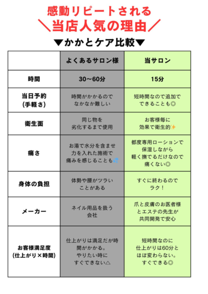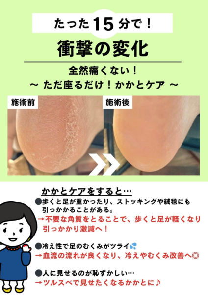 「あまり気にならない」という方こそ、 ぜひ一度体験してみてください。 ツルツルになったかかとの心地よさ、 きっと感動していただけるはず。