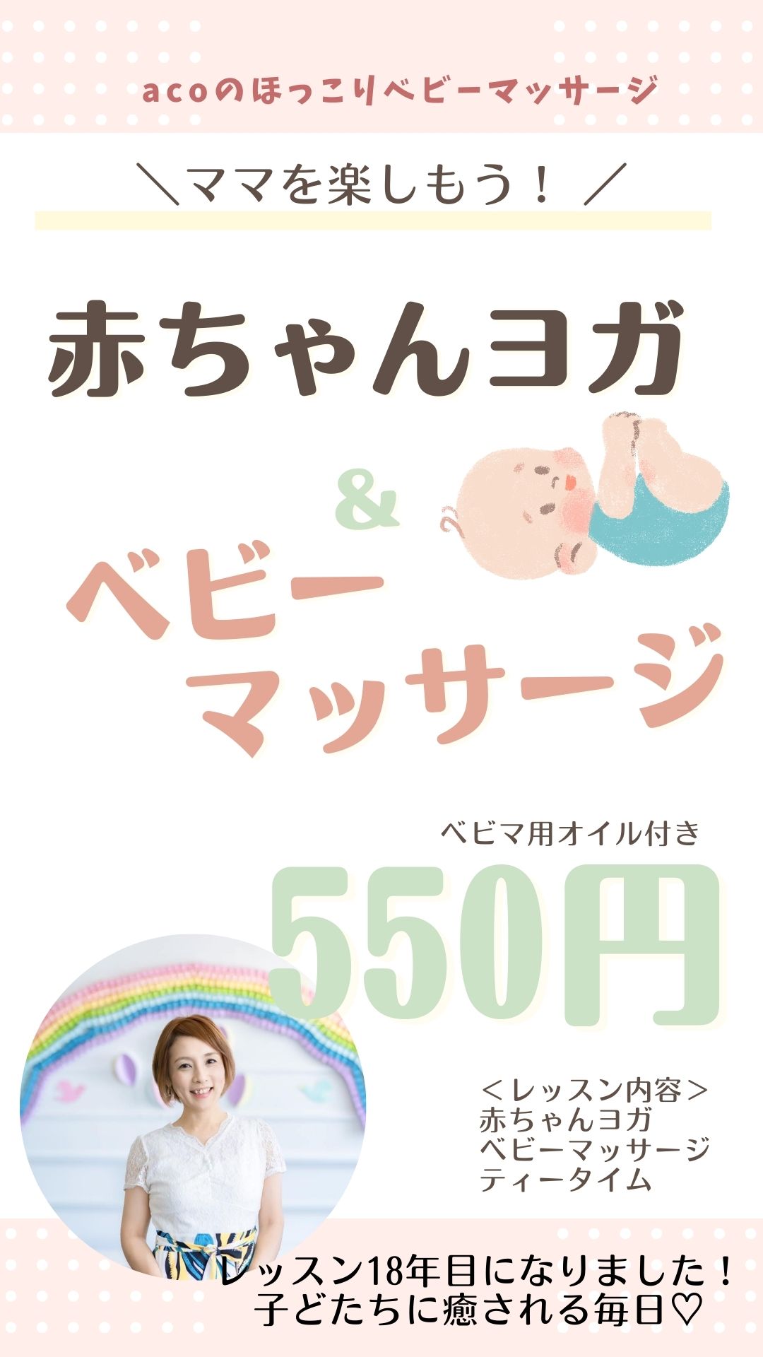 2/20 acoの!ココロがあったかくなる ほっこりベビーマッサージ~レッスン後はランチタイムをどうぞ💗